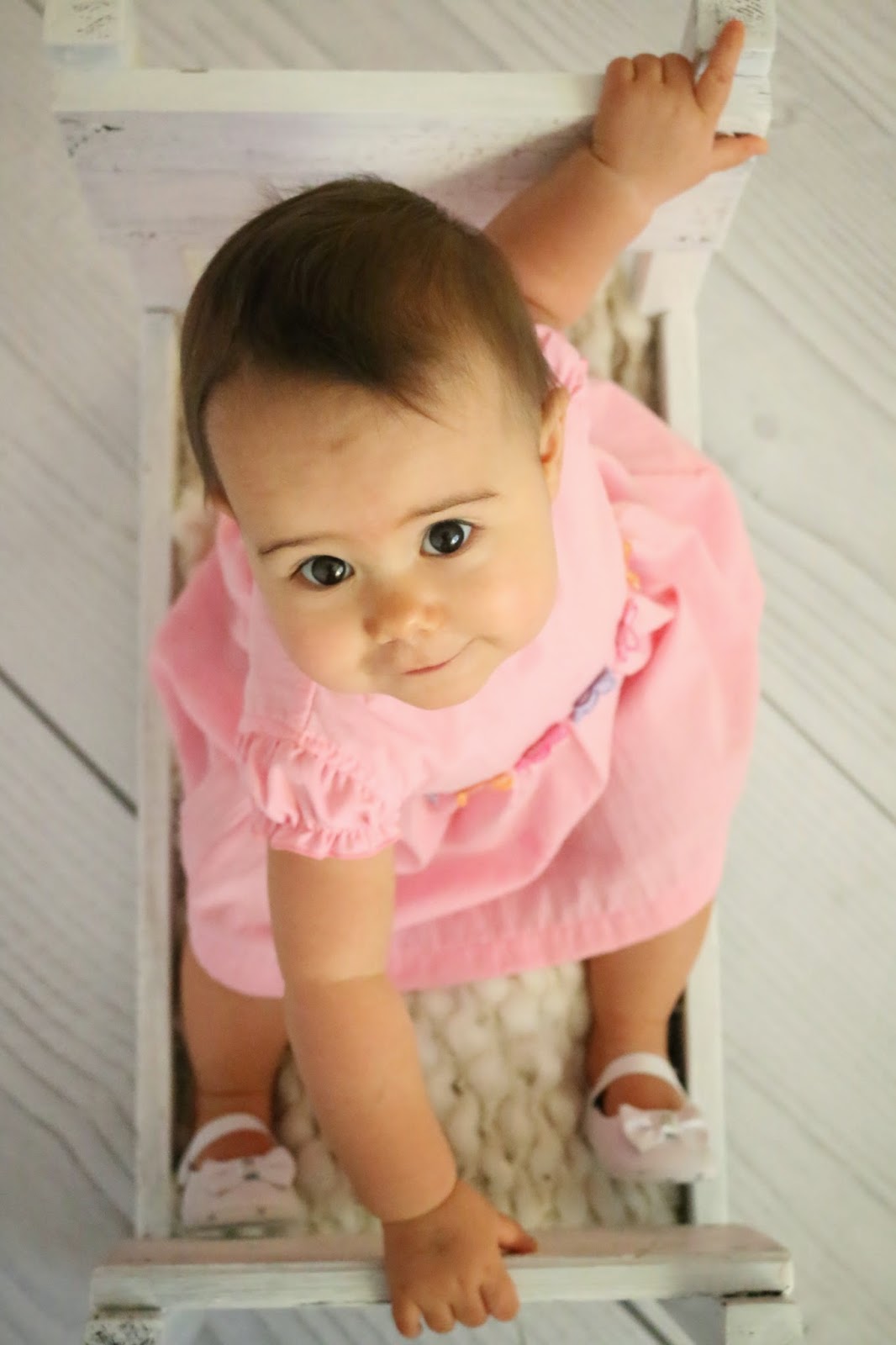 Na zdjęciach Maja w maminy czapie (Oczywiście w niej nie chodzi teraz), celem było pokazanie , że dużo nie zawsze znaczy dobrze, i czasem coś prostego jest lepsze, bo nie odwraca uwagi od dziecka i jego urody